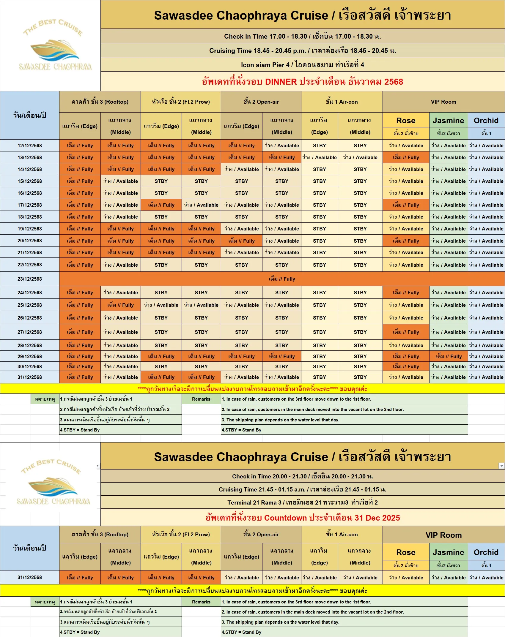 | บัตรล่องเรือเจ้าพระยา (ผู้ใหญ่) | 1,600 บาท | 1,150 บาท 1,092 บาท |
