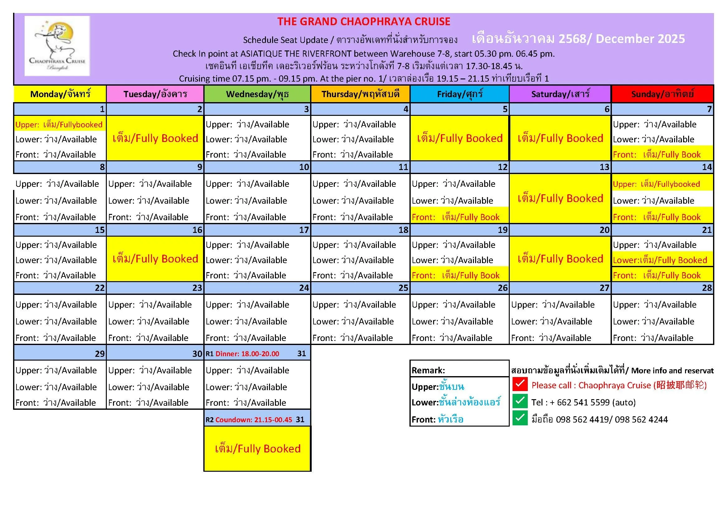 | บัตรล่องเรือเจ้าพระยา (ผู้ใหญ่) | 1,900 บาท | 970 บาท |